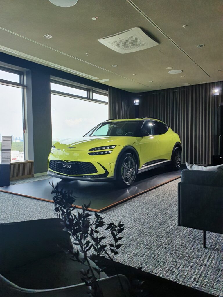 Genesis GV60 trifft Luxus-Loft: Im b’mini CarLoft Frankfurt steht dein Auto mitten im Schlafzimmer. Ein Raum, ein Auto, ein Erlebnis – alles, wovon du nachts träumst.